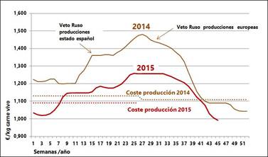 Según la encuesta ganadera del ministerio de Agricultura de mayo de 2015, el número de animales ha aumentado respecto la encuesta de hace un año un 4,94% a nivel estatal, en concreto en engorde un 6,09%. El mayor número de oferta unido a un consumo que no se ha visto incrementado, está provocando una caída de precios situándolos por debajo de la media de los últimos cinco años.