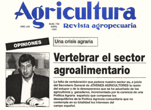 Que veinte años no es nada; o veintitrés, para ser exactos, los que han pasado desde abril de 1993 cuando la revista agropecuaria Agricultura (que ya era la decana del sector y hoy sigue su andadura) publicara la opinión del entonces Secretario General de Jóvenes Agricultores Antonio Castellanos, reclamando la vertebración del sector agroalimentario en medio de una crisis agraria.