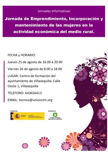 Tendrá lugar en Villasequilla el jueves 25 de agosto de 16.00 a 20.00 y el viernes 26 de agosto de 8.00 a 18.00, donde se impartirán talleres para presentar alternativas laborales en el medio rural.