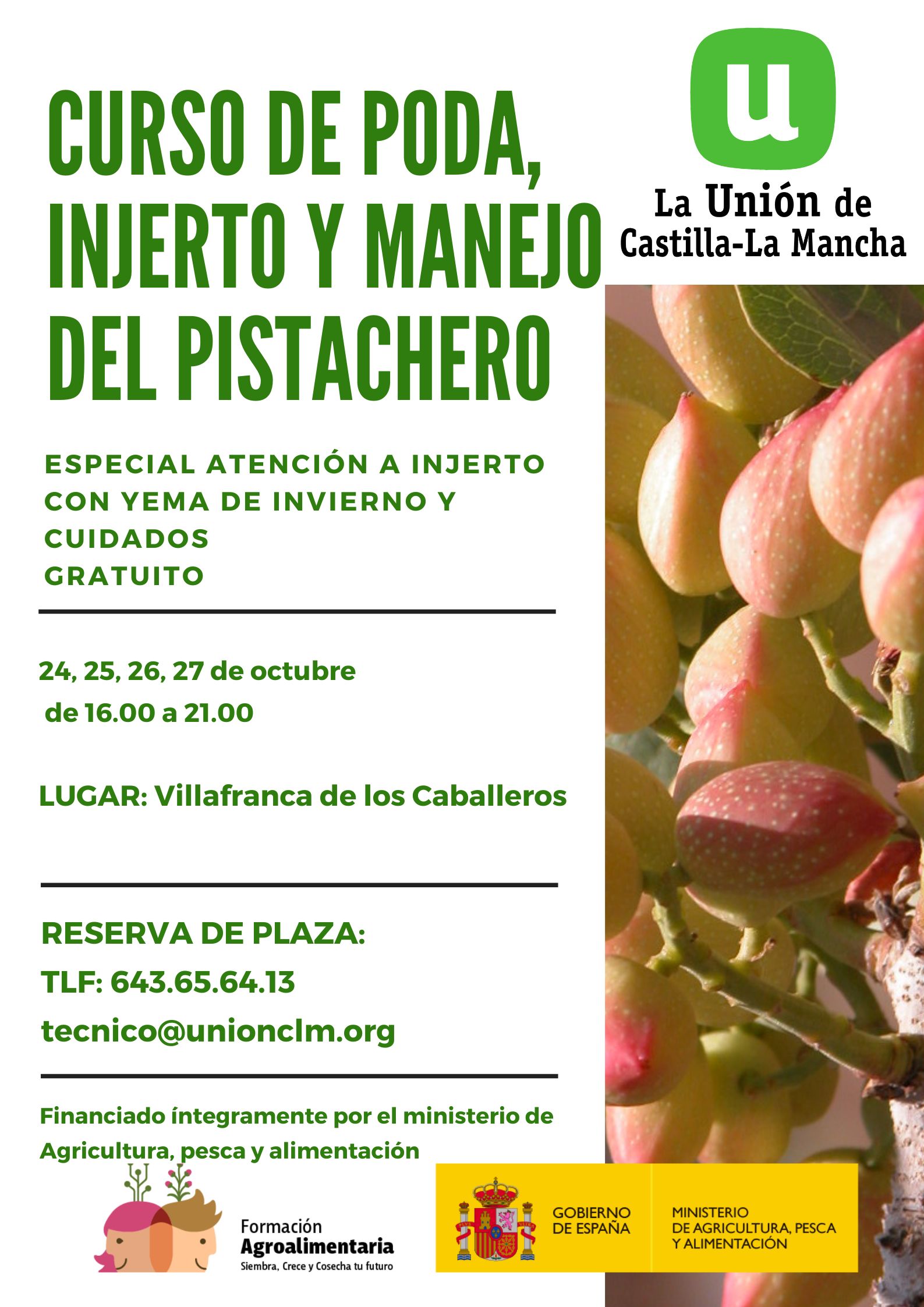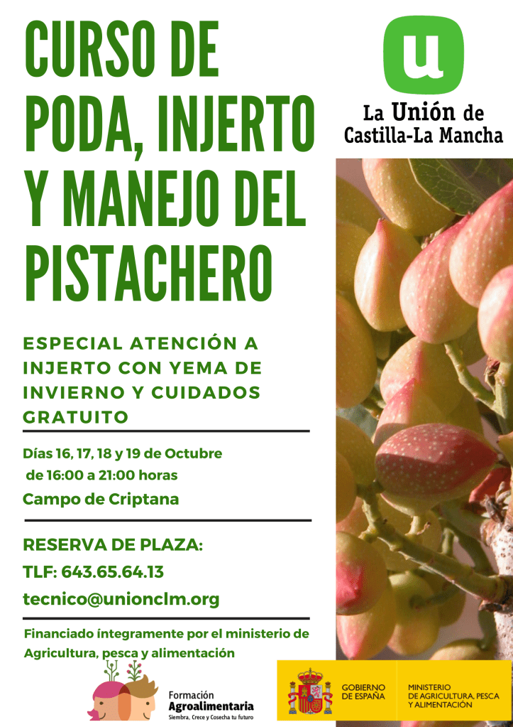 - poda e injerto del pistachero (en Talavera de la Reina del 9 al 13; en Campo de Criptana del 16 al 19; en Villafranca de los Caballeros del 24 al 27 de octubre),