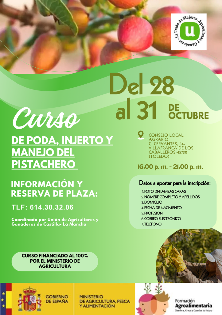 La Unión de Castilla-La Mancha organiza un Curso de Poda, Injerto y Manejo del Pistachero, una excelente oportunidad para formarte en técnicas fundamentales para el cultivo de este valioso fruto.