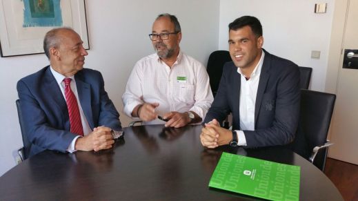 En la izquierda en primer plano Ricardo Sanchez, Sectorial Vitivinícola de la Unión de Uniones; Luis Javier Navarro, responsable de sectores agrícolas de la Comisión Ejecutiva de Unión de Uniones; Joan Santó, responsable de la Sectorial Vitivinícola de la Unión de Uniones y al fondo Constantino Gil Técnico Coordinador de la Sectorial Vitivinícola de la Unión de Uniones