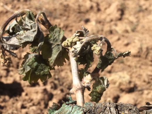 En cuanto a la uva de vino, en los últimos días del mes de abril se alcanzaron temperaturas muy por debajo de cero en zonas de la meseta norte, con daños muy intensos al ocurrir la helada con las viñas recién brotadas, que es cuando mayor sensibilidad presentan ante el frío. Las comunidades autónomas más afectadas son Galicia, Castilla y León, Navarra, La Rioja y País Vasco (Álava). Los daños afectaron a algunas de las Denominaciones de Origen más importantes del país, como Ribera del Duero, Rioja, Ribeira Sacra, etc