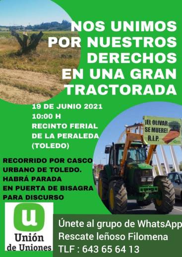 Ante los graves daños, preparamos una gran tractorada en la movilización del 19 de junio en Toledo, a la que hemos invitado a todas las Organizaciones Agrarias para que aporten sus reivindicaciones y se sumen a la protesta. Hasta la fecha no hemos recibido contestación, no sabemos si porque sus afiliados no tienen daños por filomena o por los conejos, o porque no quieren molestar a la Administración que tan generosa es con ellas.